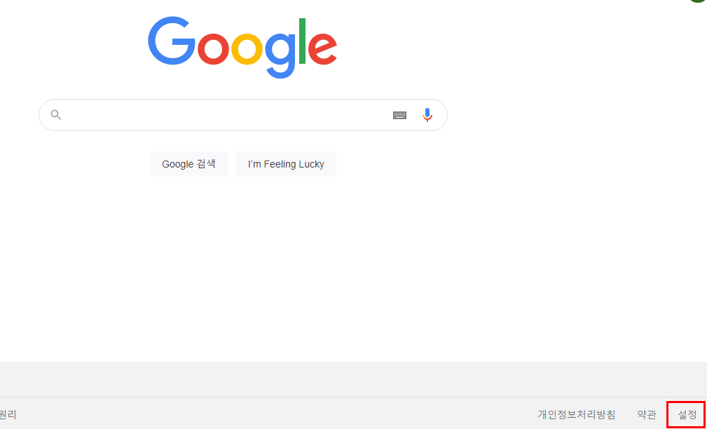 구글 사이트에 접속한뒤 오른쪽 하단에 보면 설정 이라는 메뉴를 클릭해줍니다.