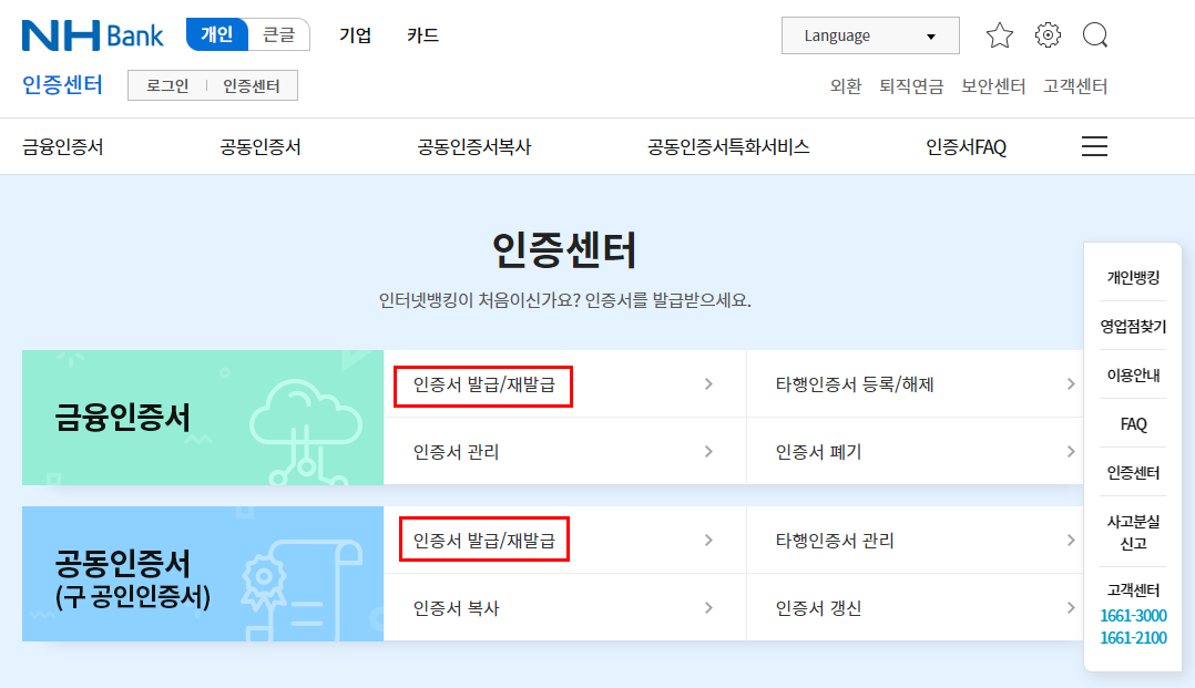 먼저 NH농협 인터넷뱅킹 인증센터로 접속합니다.