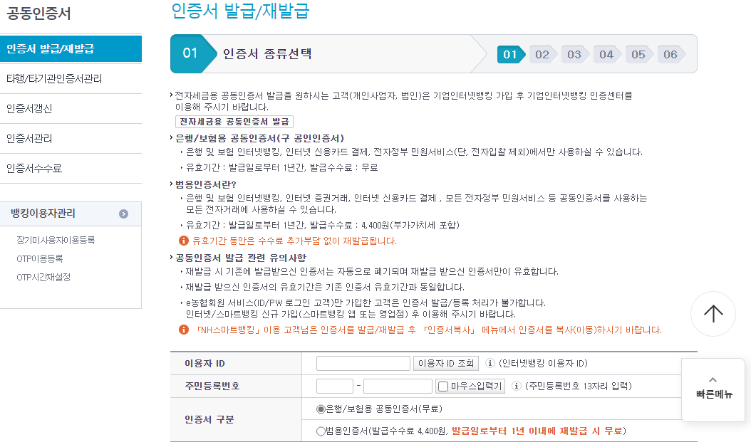 농협인터넷뱅킹에서 공인인증서 재발급 받는 방법에 대해서 알아보겠습니다.
