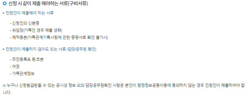 신청시 같이 제출해야하는 서류로는