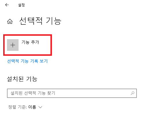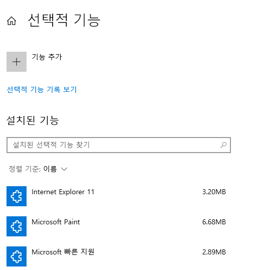 4. '선택적 기능' 들어가서 +기능추가 를 클릭한 뒤 Internet Explorer 11 를 선택해 추가 합니다.