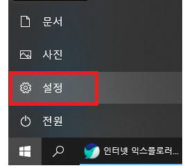 1. 먼저 윈도우 시작버튼을 누르시고 톱니바퀴 모양의 설정을 눌러주세요.