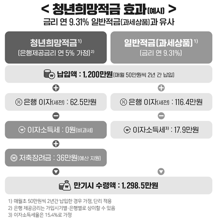 * 매월 50만원씩 2년간 납입하는 경우 최대 36만원 저축장려금 지원